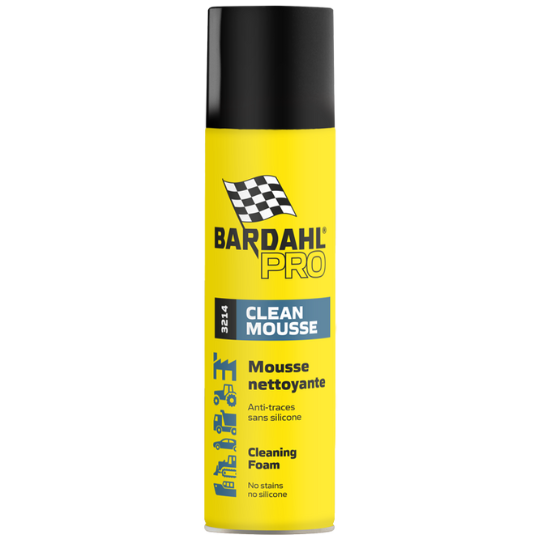 Le Clean mousse se base sur une formule concentrée, moussante et agréablement parfumée. Il dissout et élimine les tâches les plus rebelles (dépôts de gras, doigts, poussières...). Son utilisation ne laisse pas de trace et empêche la poussière de se redéposer. Le produit s'utilise sur toute surface vitrée, plastique et textile. Vivement recommandé par le Sébastien Loeb Racing: "Nous utilisons le Clean Mousse pour tous les besoins de nettoyage (poussière, terre, insectes, etc.) sur toutes surfaces, y compris le pare-brise. On nettoie aussi bien la carrosserie à sec ou bien en pulvérisant sur les pièces mécaniques avant lavage au karcher. En le laissant agir une vingtaine de secondes, c'est un produit très polyvalent pour le nettoyage. On utilise en moyenne 2 bombes par voiture par meeting de course."